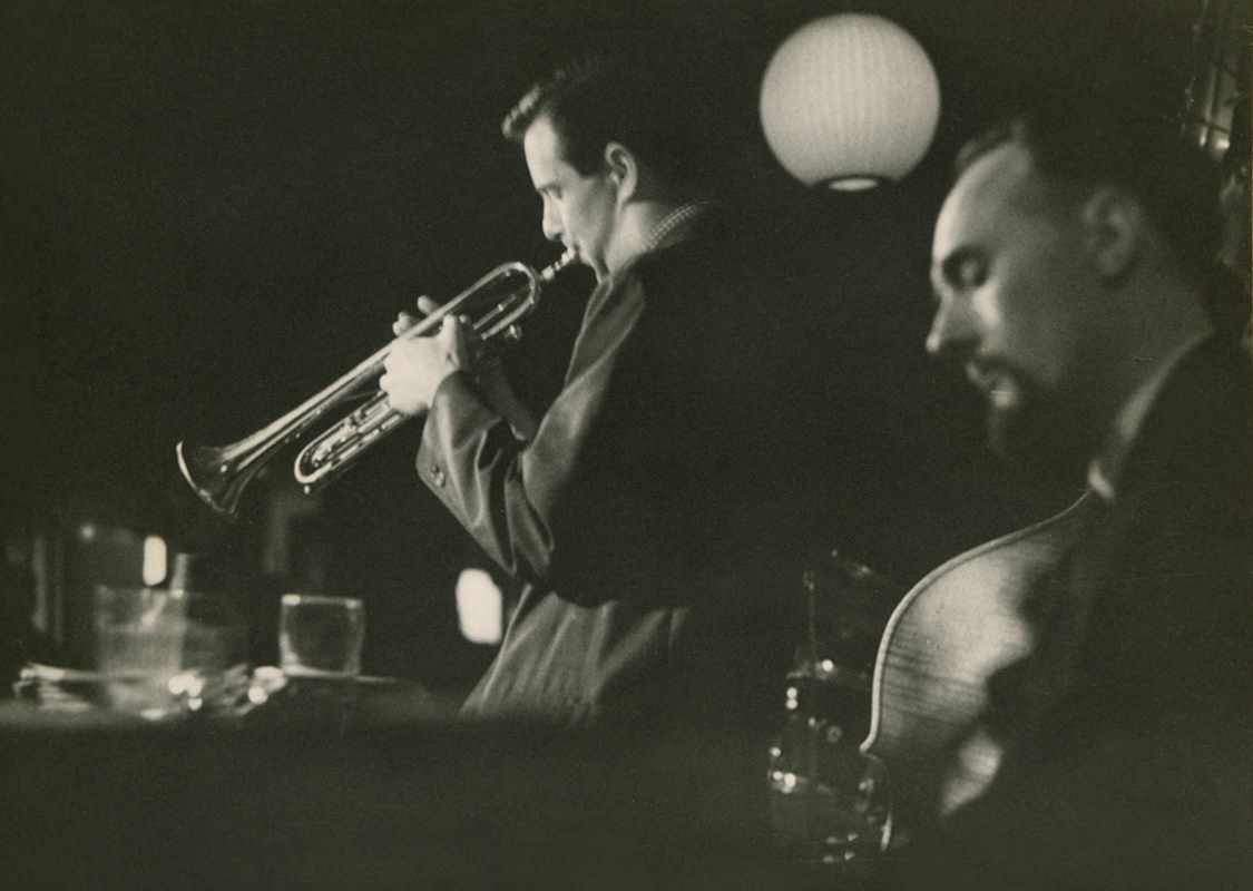 Photo of John Dawe (trumpet) and Harold Krause (piano) at the original Cellar, circa 1959, by Bill Boyle, courtesy James Carney and Marian Jago. Photo of John at his Richmond apartment, January 25, 2014, by Chris Wong.