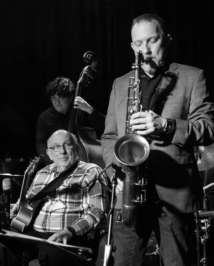 Photos: Ron Small at the Cellar, March 7, 2008, by Steve Mynett. Ernestine Anderson and Clyde Griffiths at the original Cellar Jazz Club, by Franz Lindner. Bob Murphy at the Cellar, March 7, 2008, by Steve Mynett. Cory Weeds, Bill Weeds, and David Caballero at Frankie’s Jazz Club, January 22, 2023, by Vincent Lim. Al Neil, Bobby Hales, and Kate Hammett-Vaughan: photographer unknown.